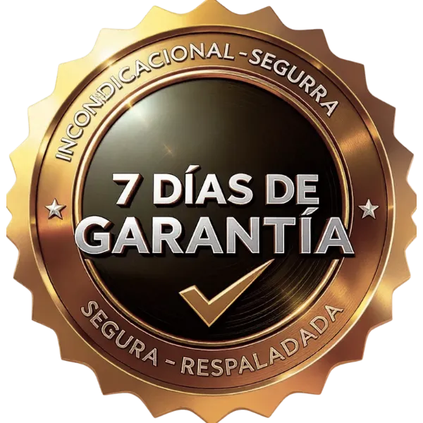 Tu inversión está respaldada por nuestra Garantía Total de 7 Días. Prueba el programa, y si sientes que no es para ti, solicitas la devolución y recuperas tu dinero, sin preguntas.