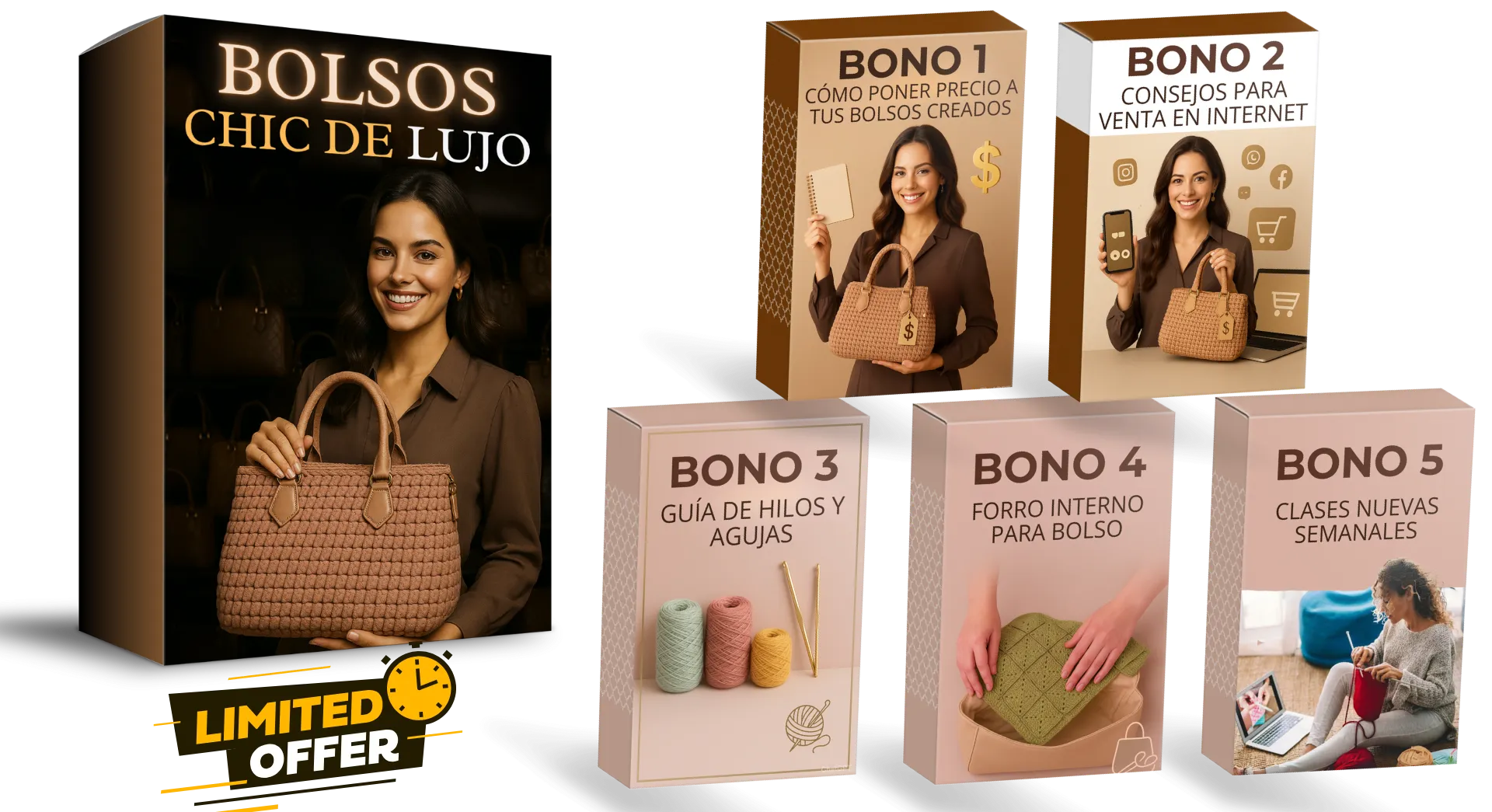 185 patrones en video desde casuales hasta elegantes, perfectos para usar, regalar o vender, ideales para viajes, compras y uso diario